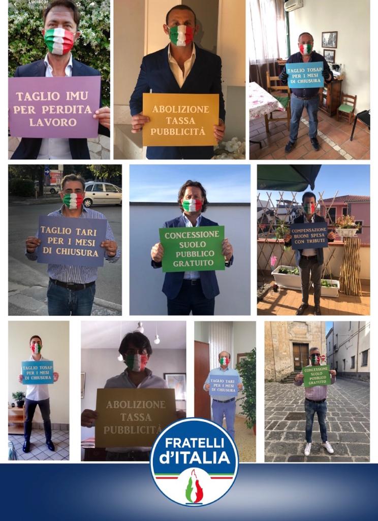 Aversa-Il locale circolo di fratelli d’Italia, con un simbolico flash mob rispettoso dei divieti imposti, ha richiesto al Sindaco, all’Assessore alle attività produttive ed al Presidente della commissione attività produttive del comune di Aversa di adottare in materia di tributi locali le seguenti agevolazioni per far ripartire il commercio ed i professionisti di Aversa, dopo la grave crisi economica determinata dalla chiusura temporanea delle rispettive attività: