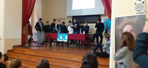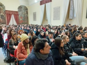 AVERSA-“Stamattina gli alunni dell’IIS di Aversa (liceo artistico,scientifico e delle scienze umane) DS Carlo Guarino, hanno incontrato nella suggestiva sala Guitmondo del Seminario Vescovile (gentilmente concessa al liceo aversano) il Professore e Scrittore GianCarlo Visitilli per parlare, discutere, dibattere del suo libro “E la felicità, prof?“. I ragazzi, voraci lettori del testo, nei mesi precedenti, hanno “processato” il nostro scrittore, lo hanno “accusato” e “difeso” prima di trovare la giusta sentenza (assolvendolo, s’intende!) ed hanno, poi, presentato le loro libere e creative interpretazioni, in un circolo virtuoso di “licenze poetiche” che hanno coinvolto emotivamente tutti i partecipanti.