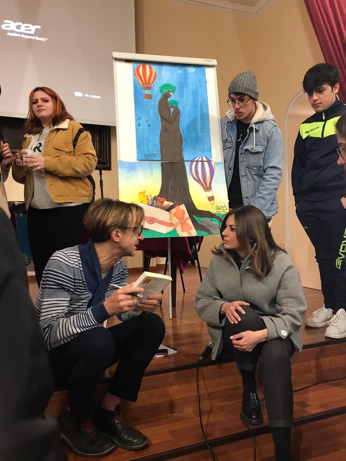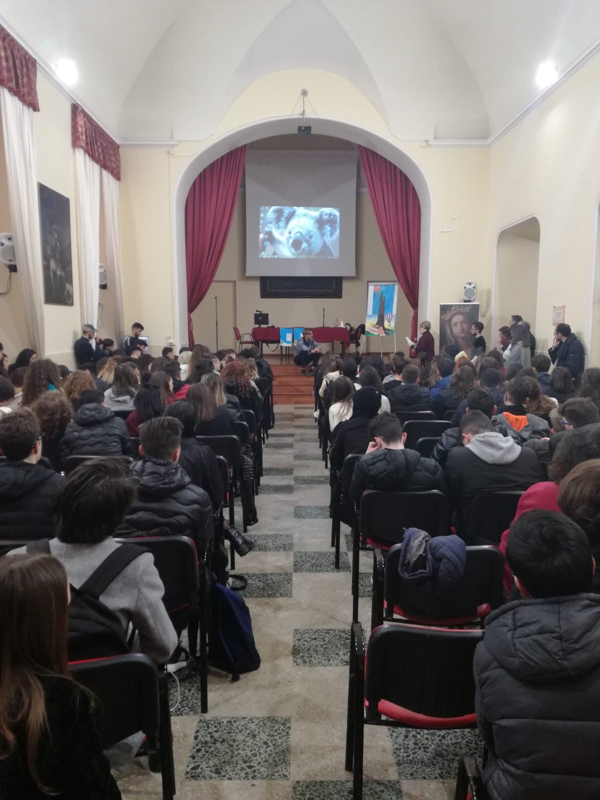 AVERSA-“Stamattina gli alunni dell’IIS di Aversa (liceo artistico,scientifico e delle scienze umane) DS Carlo Guarino, hanno incontrato nella suggestiva sala Guitmondo del Seminario Vescovile (gentilmente concessa al liceo aversano) il Professore e Scrittore GianCarlo Visitilli per parlare, discutere, dibattere del suo libro “E la felicità, prof?“. I ragazzi, voraci lettori del testo, nei mesi precedenti, hanno “processato” il nostro scrittore, lo hanno “accusato” e “difeso” prima di trovare la giusta sentenza (assolvendolo, s’intende!) ed hanno, poi, presentato le loro libere e creative interpretazioni, in un circolo virtuoso di “licenze poetiche” che hanno coinvolto emotivamente tutti i partecipanti.
