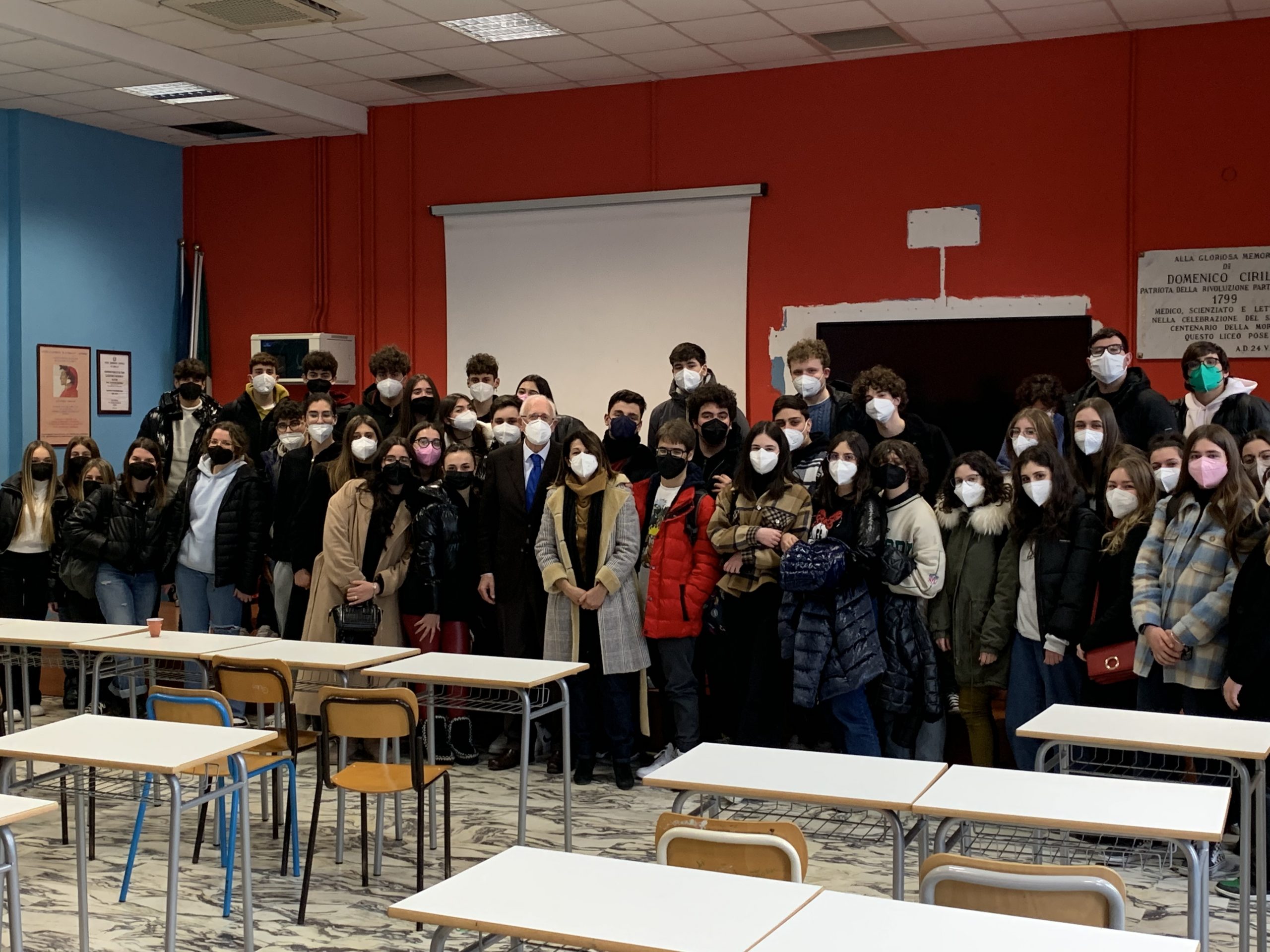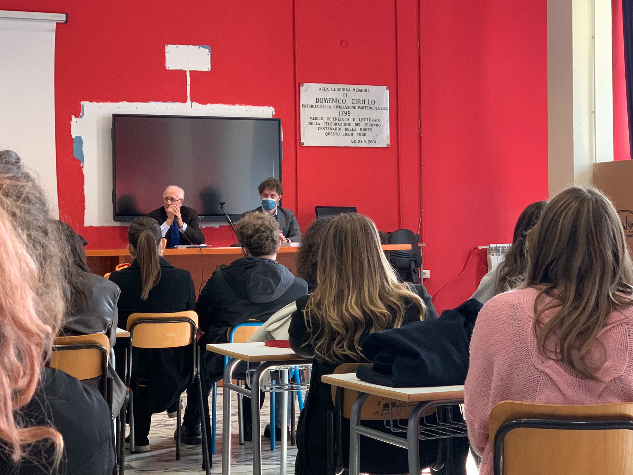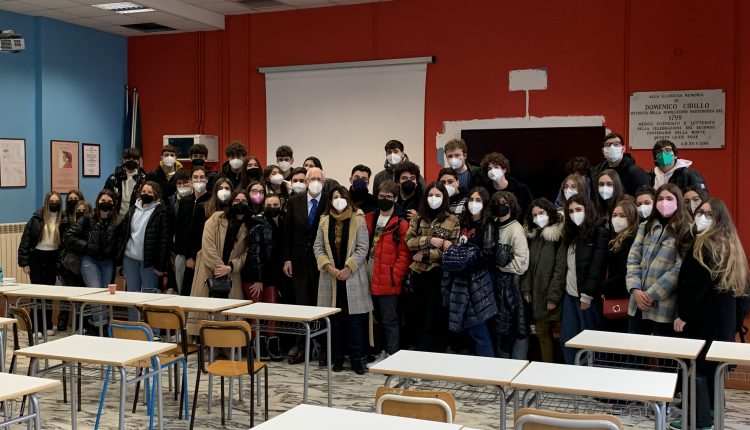 Aversa-Il 03/03/2022 gli allievi delle classi quinte e i partecipanti al PON “Impariamo a costruire la memoria” del Liceo Classico e Musicale “D. Cirillo” di Aversa (DS Luigi Izzo) hanno preso parte all’emozionante e coinvolgente incontro con Tullio Foà, ultimo testimone delle terribili persecuzioni e discriminazioni determinate dalle leggi antisemite varate dal regime fascista. Classe ’33, Tullio aveva cinque anni quando nel 1938 sono state emanate leggi razziali e nove durante le quattro giornate del 1943, durante le quali  determinante è stato il ruolo degli scugnizzi napoletani “morti nelle giornate di resistenza ai nazisti”