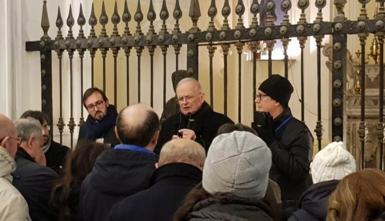AVERSA – Grande presenza venerdì 27 Dicembre 2019 al percorso culturale “Il Cammino degli Angeli. I segreti di Aversa tra santi, arti e bellezze” promosso ed organizzato da CONPASUNI ed In Octabo per interpretare il tessuto urbano seguendo gli angeli presenti in chiese, altari ed opere d’arte custodite dalla Diocesi di Aversa. Il percorso è partito con In Octabo dall’antica Porta San Giovanni ed ha attraversato le tre murazioni urbane comparandole con le tre principali sfere celesti nelle quali è ordinata la gerarchia degli angeli.