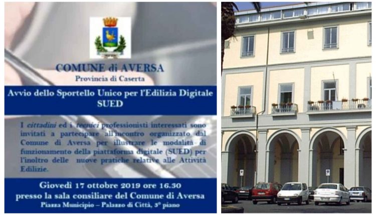 Il 17 ottobre 2019 alle ore 16.30, presso la sala Consiliare del Comune di Aversa, Piazza Municipio, Palazzo di Città, 3° piano si terrà la presentazione del servizio online SUED inerente l’inoltro delle pratiche edilizie. L’incontro, rivolto ai Cittadini e ai Professionisti operanti nel campo dell’edilizia, è finalizzato ad illustrare il Sistema Informativo SUED e raccogliere feedback e osservazioni da parte dei partecipanti.
