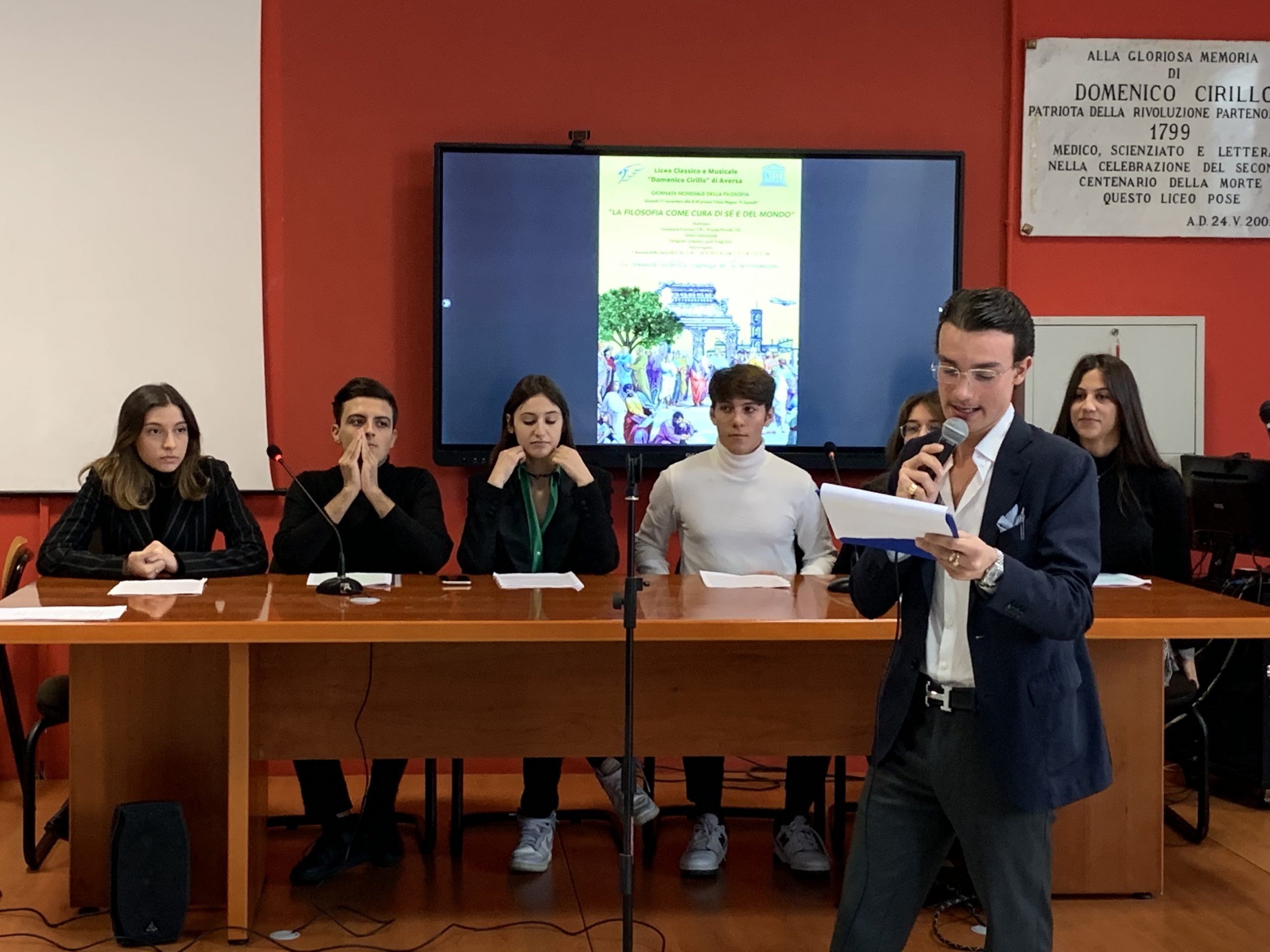 Indetta dall’Unesco nel 2002, la Giornata Mondiale della Filosofia ha luogo ogni anno il terzo giovedì del mese di novembre con lo scopo di far risaltare il valore duraturo della disciplina nella nostra società, andando incontro agli obiettivi posti dall’Agenda 2030 per lo sviluppo sostenibile. Il Liceo Classico e Musicale “Domenico Cirillo” di Aversa ha, anche per quest’anno, riproposto l’evento con un convegno incentrato, non soltanto sulla presenza della filosofia nel contesto didattico, ma anche come medicina doloris per la cura di sé e degli altri e dell’ambiente. Quando, infatti, l’umanità si perde nel disordine e nell’incertezza, diviene necessario ricorrere alla riflessione filosofica che riesce a fornire delle risposte. L’evento, trasmesso in diretta Facebook dall’Aula Magna “F. Santulli” del Liceo e moderato dagli alunni Gianmaria Corvino (V B) e Wanda Piccolo (V E), è stato aperto dai saluti istituzionali del dirigente scolastico prof. Luigi Izzo che, facendo “gli onori di casa” ha sottolineato, con grande orgoglio, l’incommensurabile lavoro preparatorio alla buona riuscita del convegno. Già da alcuni giorni, la locandina realizzata dalla III E, raffigurante “la Scuola di Atene” di Raffaello in cui è presente il contrasto tra natura e mondo antropizzato, ha lasciato trapelare con un carattere insolito, ma al contempo innovativo, alcune delle tematiche oggetto della giornata. A introdurre la riflessione filosofica sono stati gli allievi della IV e V A, che hanno sottolineato il ruolo fondamentale della filosofia come mezzo utile per pensare, riflettere e criticare all’interno di una società dove, purtroppo, regna l’omologazione. Ampio spazio è stato dedicato alle tematiche riguardanti lo sviluppo sostenibile e l’Agenda 2030, curate dagli alunni della IV C, che hanno compiuto un excursus sulle tematiche ambientali tra passato e presente, inserendo numerosi ed interessanti spunti filosofici tratti dal Cantico delle creature di San Francesco d’Assisi, dalla Metafisica di Aristotele, dai testi di Rousseau e Thoreau e dal Timeo di Platone. Significativa è stata la messa in scena “È tutto un complesso di cose” realizzata dalla IV e V AMus. Gli allievi dell’indirizzo musicale, tentando di rispondere alla domanda “Cos’è per noi la cura?”, hanno messo in risalto il sottile legame che intercorre tra filosofia e musica e sulle qualità espressive che, entrambe, riescono a sviluppare in ognuno di noi. Dopo un coffee break, ha avuto inizio la seconda parte della conferenza aperta dall’intervento di Giuseppe Palmieri (III E) che ha ripercorso, con la platea presente, il significato della giornata, e fatto risaltare l’etimologia greca della parola filosofia, la sua nascita e il suo senso nella nostra società, declinando la riflessione filosofica non soltanto come rimedio, ma anche come approccio pratico attraverso il metodo Lipman. L’esercizio della P4C (Philosophy for children and community) porterà gli allievi dei corsi B ed E ad affinare numerose competenze previste dall’UE e a collaborare per raggiungere unitamente l’obiettivo di introdurre questa disciplina, in contesti nei quali è apparentemente assente. Il tema della filosofia nella cura della nostra casa comune è stato dettagliatamente trattato dagli allievi della V B. Flora Mattiello ha sottolineato il rapporto tra uomo e natura attraverso la teoria della complessità, inserendo differenti spunti di Leonardo da Vinci e del fisico austriaco Fritjof Capra. Giuseppe De Vico, in seguito, ha dato particolare rilievo al legame tra economia circolare ed ecologia e su come gli esseri umani, al giorno d’oggi, sfruttino le risorse ambientali; Chiara Piccirillo e Antonio Urbano si sono invece concentrati sul rapporto tra bioetica e chiesa, mentre Federica D’Agostino ci ha condotto in un viaggio tra passato e presente, parlando alla platea di Socrate e Gandhi, traendo da queste due grandi personalità, una più conosciuta dell’altra, la possibilità di parlare senza veli della violenza umana contro il nostro pianeta. Concetta D’Agostino, per concludere, si è soffermata sul rapporto che gli antichi avevano con l’ambiente e sulle testimonianze filosofiche che restituiscono questo rapporto. In prosieguo, tramite la lettura di alcuni frammenti di Ippocrate, padre della medicina scientifica, Nicole Spena e Raffaele Vitale (IV I) hanno marcato il rapporto che ricorre tra filosofia e medicina, scienze necessarie per il benessere fisico e psichico dell’uomo. A seguire, l’intervento di Andrea Pannullo (IV E) ha evidenziato, con la lettura di alcuni racconti degli stoici romani tratti dal testo di John Sellars, l’iter del filosofo stoico che tenta di liberarsi dal dolore attraverso la filosofia; allo stesso modo, Francesca Bagno (IV E), usufruendo del testo di Sellars, ha esposto alla platea come la filosofia epicurea, tramite alcuni dei suoi precetti, abbia permesso agli uomini del suo tempo di raggiungere la cosiddetta atarassia, dopo la crisi innescata dalla morte di Alessandro Magno. Infine, Serena Vassallo (V E) ha evidenziato, servendosi del testo Aut-Aut di Kierkegaard, come nella filosofia sia fondamentale per affrontare alcune scelte di vita, si è poi soffermata sul salto dalla vita estetica a quella etica, sull’esperienza della disperazione e dell’angoscia e sul compito della realizzazione di sé in quanto individui. In tal modo, ha fatto comprendere a tutti che questa disciplina, spesso accusata di astrattezza, in realtà, non è estranea alle nostre vite, in quanto allena le nuove generazioni ad affrontare il mondo. Dopo aver riproposto nuovamente la messa in scena della IV e VAMus, i due moderatori hanno ringraziato, a nome dell’intera comunità scolastica, coloro che hanno preso parte alla celebrazione, rivolgendo un particolare plauso ai docenti di filosofia e il Dirigente, che hanno abbracciato l’iniziativa. Sottolineando, ancora una