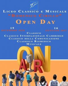 Aversa– Il 16 gennaio il Liceo Classico e Musicale “D. Cirillo”(DS Luigi Izzo) apre le porte con l’Evento OPEN DAY “on air” per presentare l’offerta formativa per l’anno scolastico 2020-21.