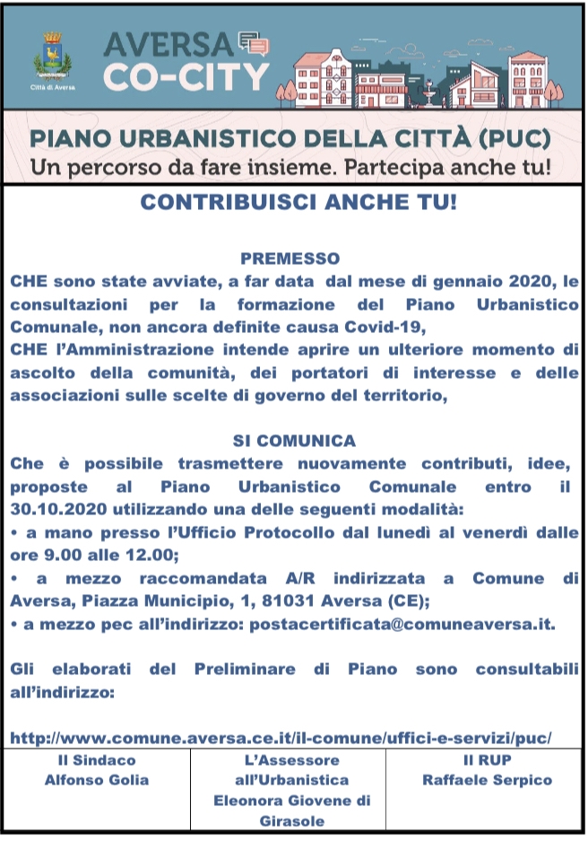 Aversa/Menale Domenico: “Puc, un percorso da fare insieme!”