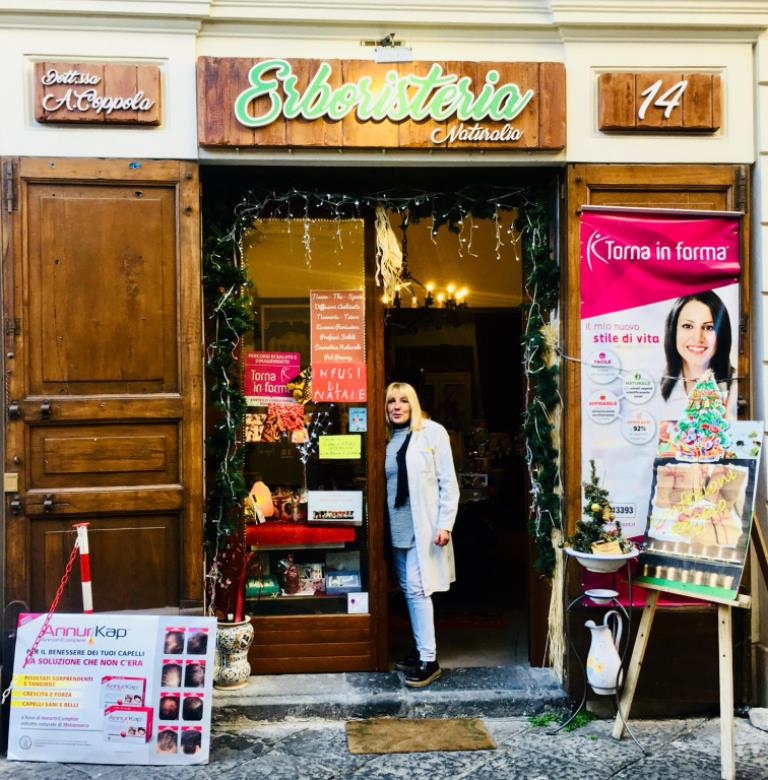 “Il mio lavoro è la mia passione” – afferma Amalia Coppola – “Il mio obiettivo è quello di trasmettere l’amore che metto nella mia erboristeria ai miei clienti, offrendo loro prodotti di qualità con annessa certificazione di provenienza e trattamento.