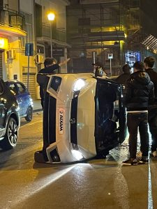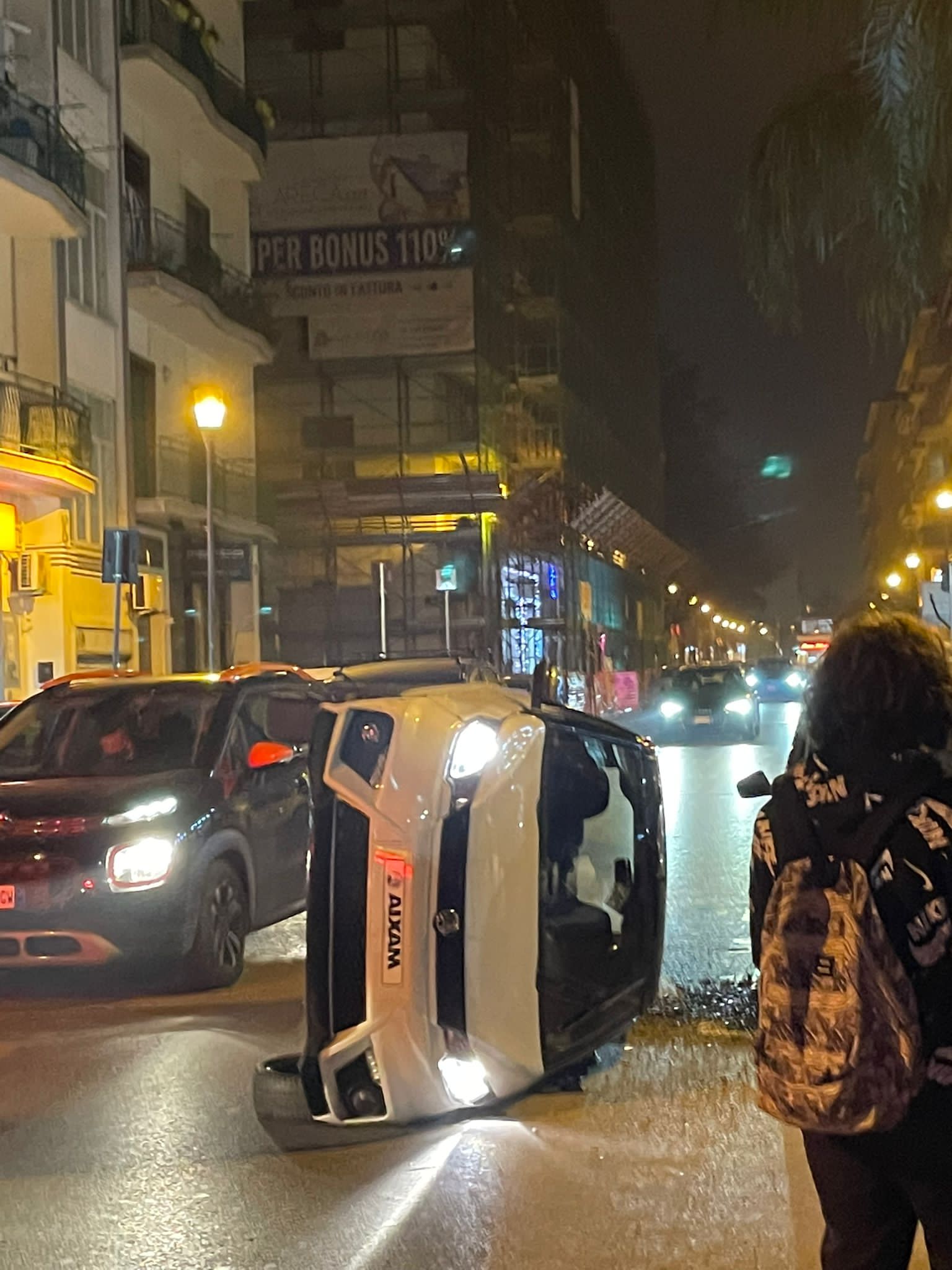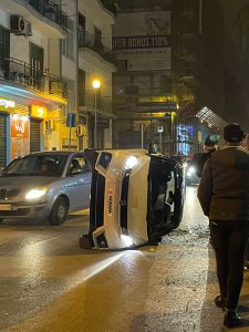 Aversa, Una mini car 50 si è ribaltata urtando lateralmente con una 500 nei pressi del locale “Rendez vous”. Pare che i conducenti siano tutti illesi, sul posto sono arrivati anche i carabinieri per i primi rilievi. Foto Condividi FacebookTwitterWhatsAppTelegramE-mailStampa