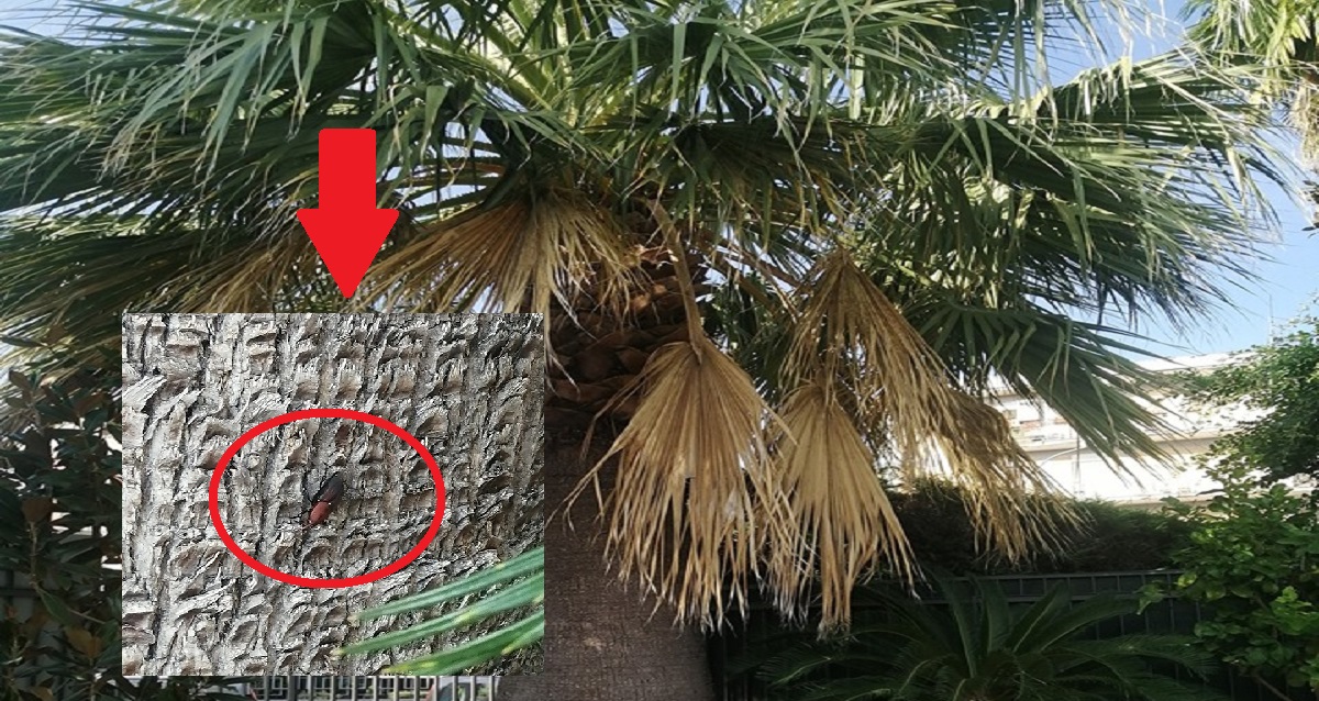 Si muoveva tranquillo sul tronco della palma, segno evidente di un’infestazione ben radicata. L’autore della segnalazione social non ha perciò esitato ad avvisare il vicinato a prestare attenzione. Ora, come scrive anche nel post “speriamo che si faccia in tempo a salvarne qualche palma ancora viva”.