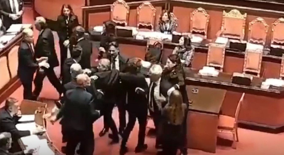 Nuova bagarre in Senato, durante la votazione degli gli emendamenti al premierato.