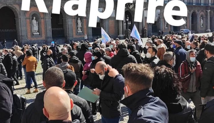 Napoli. La settimana si apre con la protesta in piazza delle partite IVA, in modo particolare del settore estetico e della cura della persona. Stamane sono accorsi in piazza Plebiscito a Napoli tanti commercianti del settore: estetiste, barbieri e parrucchieri, categoria che grida le sue ragioni e chiede la riapertura. I ristori non bastano a soddisfare i mancati introiti di un anno di chiusure a singhiozzi.