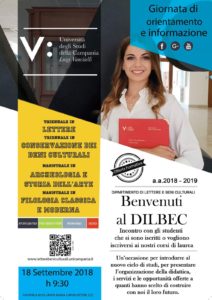 Il 18 settembre quindi, è una data improrogabile per chi volesse conoscere, iscriversi o solamente sapere l’offerta formativa e i servizi offerti ai propri studenti dal Dipartimento di Lettere e Beni Culturali dell’Università della Campania Luigi Vanvitelli.