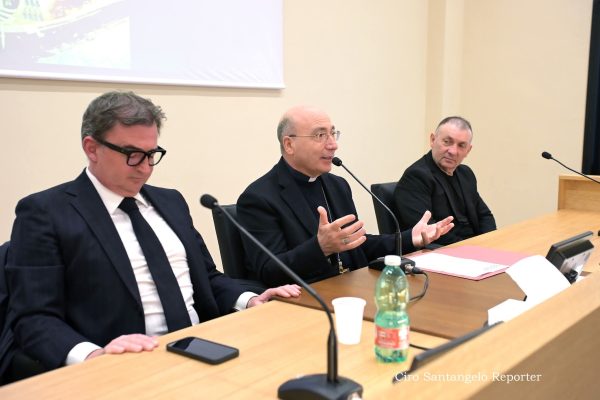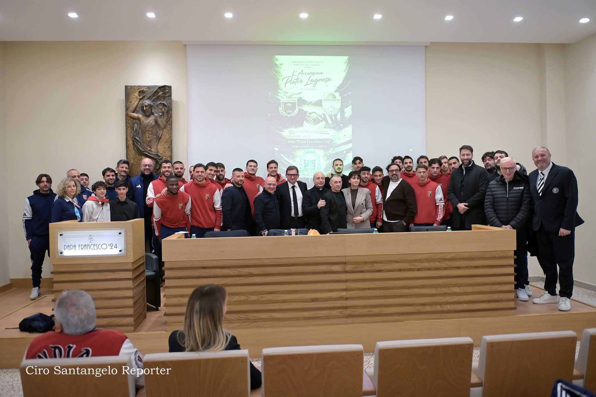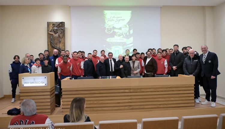 Caserta. Questa mattina, lunedì 16 Marzo, nella sala “Papa Francesco ’24” della Curia di Caserta, si è tenuto un incontro, fortemente voluto e promosso da Don Stefano Giaquinto della Parrocchia San Michele Arcangelo di Casagiove, con le due delegazioni sportive Casertane: La Casertana F.C. con Giuseppe D’Agostino e la Paperdi Juvecaserta Basket con Francesco Farinaro, alla presenza dell’Arcivescovo Pietro Lagnese, con la partecipazione degli studenti delle scuole medie insieme alla Preside, Angela Maccauro dell’ I.C. Moro-Pascoli di Casagiove.