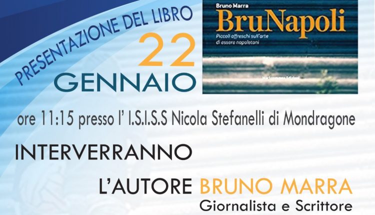 Domattina, mercoledì 22 gennaio, alle ore 11,15, presso l’I.S.I.S.S Nicola Stefanelli di Mondragone, si terrà la presentazione del libro BruNapoli di Bruno Marra, giornalista e addetto stampa del calcio Napoli. Il libro è un viaggio nell’essenza della “napoletanità” e dei suoi principali luoghi e personaggi: dal San Paolo a Maradona, passando per Eduardo De Filippo, Pino Daniele e Totò. Prenderanno parte alla presentazione, oltre all’autore, il giornalista Antonello Auletta, il Sindaco della Città di Mondragone Virgilio Pacifico e il Dirigente Scolastico Giulia Di Lorenzo. A moderare l’incontro il giornalista Salvatore Di Rienzo.