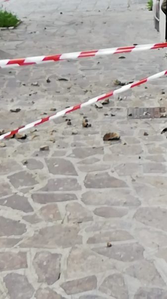 Piovono invece calcinacci dall’edificio che ospita il locale comando di Polizia Municipale in corso I Ottobre. L’area interessata dalla caduta è stata già transennata.