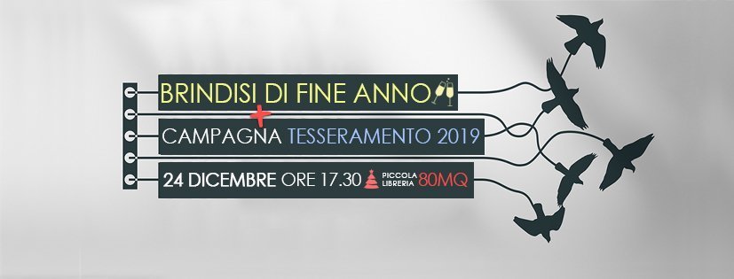 La serata sarà anche l’occasione per avviare la campagna tesseramento 2019: chi vorrà, potrà, con un piccolo contributo a scelta tra 20€ o 10€, sottoscrivere la Tessera di 80mq e aiutarci a sostenere le attività presenti e future. Quindi cerchiate in rosso la data e non mancate Domenica 24 alle ore 17.00 armati di spirito di festa, per il saluto prima delle ferie.