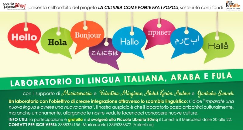 Iscrizioni aperte al laboratorio gratuito di lingue, Italiano, Arabo e Fula