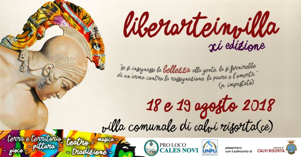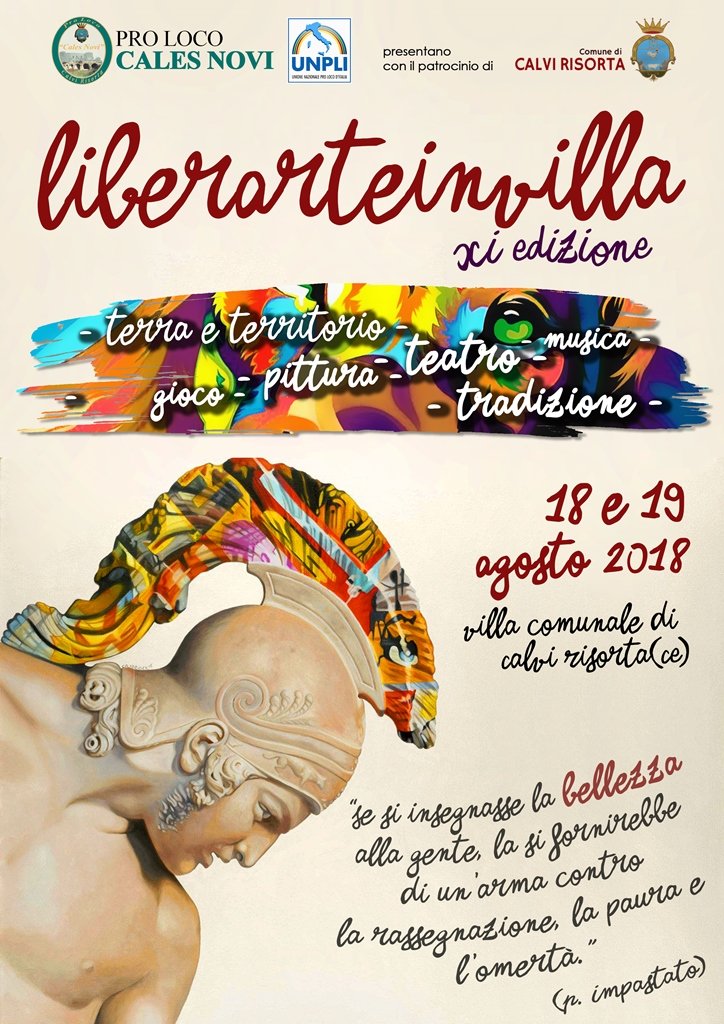 CALVI RISORTA – Per il 18 e 19 Agosto 2018 la Pro Loco Cales Novi ha organizzato la XI^ edizione di “LiberArte in villa”