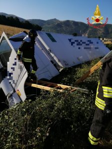 Caiazzo.Questa mattina, verso le ore 07:00, una squadra dei Vigili del fuoco del Comando provinciale di Caserta è intervenuta sulla SP 333 in via Arcaico nel comune di Caiazzo per un incidente stradale dove un autocarro adibito al trasporto latte, per cause da accertare, usciva fuori strada ribaltandosi con il suo conducente bloccato all’interno della cabina. Giunti immediatamente sul posto i Vigili del Fuoco hanno estratto dall’abitacolo del mezzo pesante la persona ferita, assicurandolo alle cure dei sanitari presenti sul posto con un’autoambulanza. Successivamente hanno messo in sicurezza il veicolo assistendo il personale del soccorso stradale nelle operazioni di recupero.