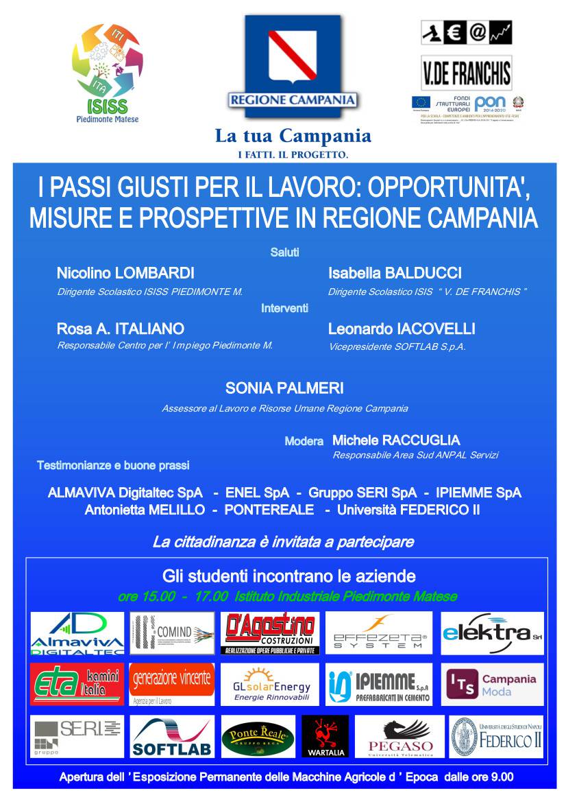Campania, iniziativa: “I passi giusti per il lavoro: opportunità, misure e prospettive in Regione Campania”Dalle 15:00 alle 17:00, gli studenti e i giovani del territorio matesino avranno la possibilità di incontrare più di 20 aziende e mettersi in evidenza. È importante predisporre un curriculum vitae.