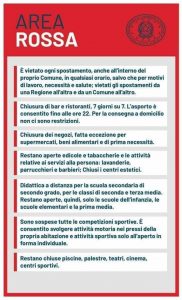 Consentita l’attività motoria, ginnastica e jogging, ma solo vicino casa. L’attività sportiva consentita in forma individuale e all’aperto. Restano aperte le industrie, le attività legate all’artigianato, all’edilizia e ai servizi. È consentito il transito nei territori della zona rossa se è necessario a raggiungere altri comuni dove non ci sono restrizioni agli spostamenti o dove sono comunque consentiti. In ogni caso, nell’area rossa sarà sempre necessario utilizzare l’autocertificazione per giustificare gli spostamenti.