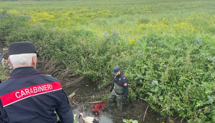 una Cicogna all'interno di un canale di bonifica in comune di Cancello ed Arnone (CE),