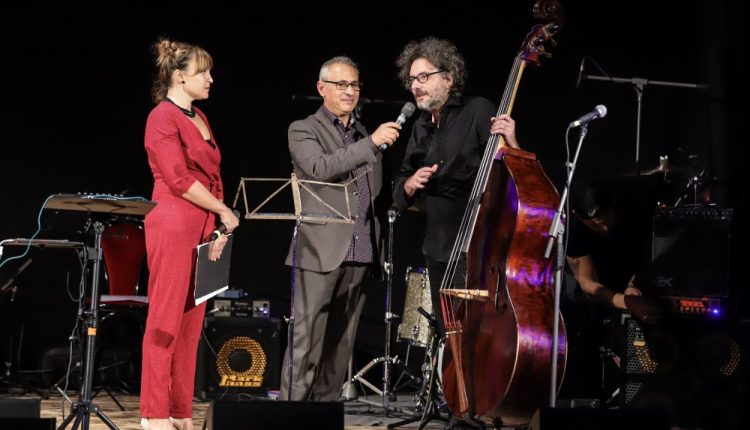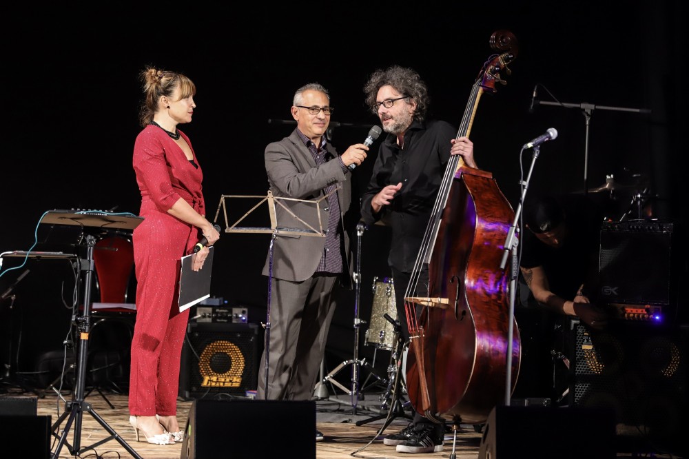 Ferruccio Spinetti, direttore artistico, con i presentatori Carlotta Scarlatto e Ottavio Nieddu nell’edizione 2018