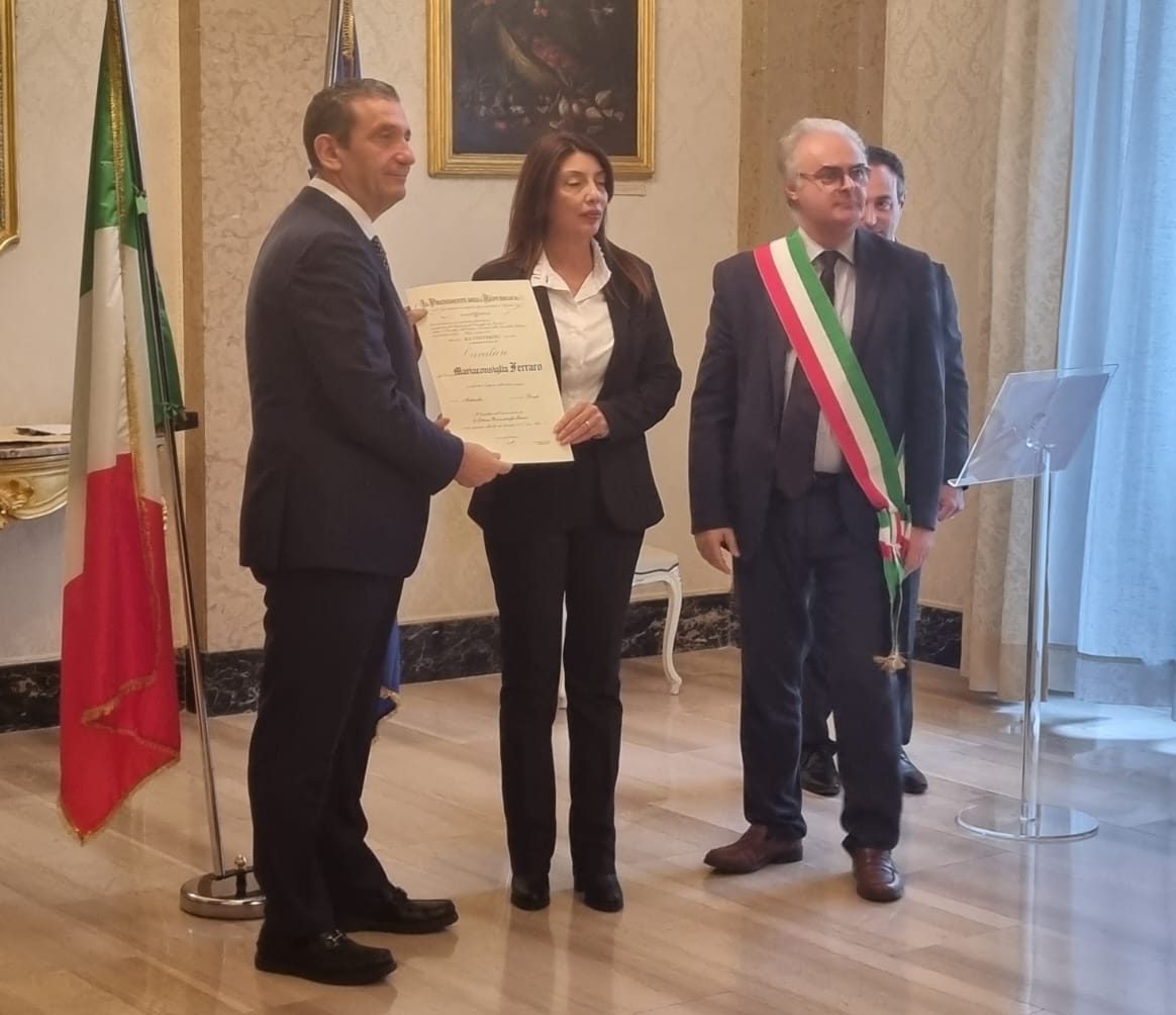 Maddaloni/Marcianise – Due anni e oltre di sacrifici e duro lavoro hanno portato anche qualche gratificazione al personale in servizio presso il covid hospital di Maddaloni. Dopo la nomina di Maria Tontoli, infermiera veterana del nosocomio calatino, oggi è toccato a Consiglia Ferraro essere insignita, nella sala della Prefettura di caserta, del titolo di Cavaliere della Repubblica. Consiglia Ferraro, 48 anni, di Marcianise, già da anni caposala del reparto di medicina e pneumologia nell’ospedale di Maddaloni, ha mantenuto il suo incarico nella trasformazione della struttura in covid hospital, continuando a lavorare in prima linea, coordinando i suoi colleghi e sempre al loro fianco, primus inter pares. tra gli infermieri. Umile e sempre disponibile tanto con i pazienti quanto con i colleghi, infermiera di esperienza, ha fatto prevalere su tutto il senso del dovere e l’abnegazione per un lavoro che quando svolto con passione come nel suo caso, diventa una missione. Il titolo conferito non sorprende ma gratifica.