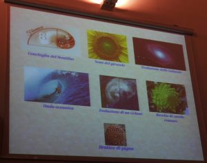 Le forbite relazioni di Agnisola e Melone si sono rivelate, come abbiamo accennato, i migliori fondamenti teorici per meglio apprezzare i messaggi delle poesie e delle tele sui quali ha trovato il suo accattivante sviluppo la seconda parte del Convegno. Per un versante, l’approfondimento sui più diversi ma autentici significati ed obiettivi dell’Arte, in tutte le sue espressioni, ha contribuito a tratteggiare le forme e gli ambiti sovente convergenti della sublimazione umana; per l’altro, ad onta di un pur comprensibile sebben fuorviante luogo comune che la concepisce arida e astrusa, la sorprendente rassegna della bellezza che la matematica oggettivamente esplora e manifesta, con un particolare riguardo alla Spirale di Fibonacci al cui archetipo risale, in realtà, la “sezione aurea” che piacevolmente ricorre nella poetica della Viggiano.