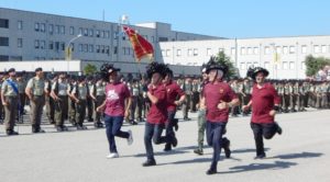 e di tantissimi familiari ed amici giunti in prevalenza dalle regioni meridionali (Sicilia, Campania, Sardegna, Puglia e Calabria), mille giovani volontari del 1° Blocco 2018 dell’Esercito Italiano, nella rovente mattinata di venerdì 20 luglio 2018, hanno reso il loro giuramento di fedeltà alla Repubblica. Puntualmente schierate sul piazzale Antonucci della Caserma “Salomone”, le sei Compagnie del 1° e 2° Battaglione, durante la solenne cerimonia, avevano di fronte la storica Bandiera di Guerra del 17° Reggimento Addestramento Volontari (RAV) “Acqui”, posizionata davanti alla Tribuna d’Onore, cui facevano corona, da un lato, le rappresentanze delle Associazioni combattentistiche e d’Arma, dall’altro i gonfaloni delle città-martiri di Mignano Montelungo e Bellona