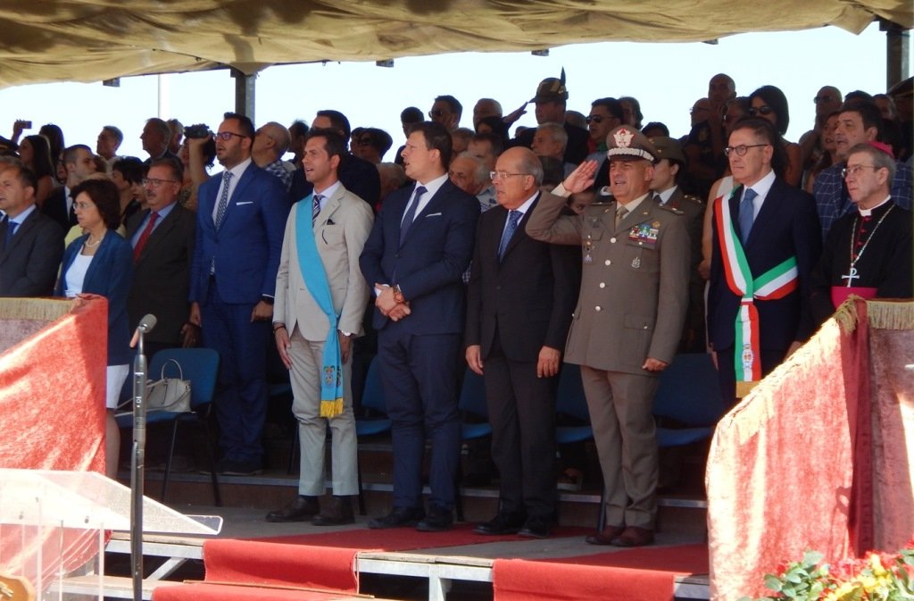 . A quel punto il momento culminante: solennemente interrogati, soldati e soldatesse, ad una sola voce ferma e concorde, hanno gridato il loro giuramento, cantando subito l’Inno nazionale e poi ascoltando raccolti la Preghiera per la Patria recitata dal nuovo cappellano militare don Francesco Marotta. A seguire e in apertura del suo fondamentale discorso – come ogni volta pieno di umanesimo che impregna un granitico “senso dello Stato” – il generale Faraglia non ha dimenticato niente e nessuno: infatti, a tutti gli intervenuti ha fatto giungere espressioni di profonda gratitudine per la partecipazione all’Evento e dopo ha sviluppato una forte sequenza di puntualizzazioni e moniti di alto profilo culturale, civile e militare, peraltro comunicati con eccezionale garbo e capaci di illuminar le menti ed infiammare i cuori. Fra i passaggi essenziali quello sul giuramento concepito come base per costruire il futuro. “E questo futuro – ha ricordato ai giovani assorti il comandante del CAV– non riguarda solo le conoscenze, le tecniche professionali che verranno affinate e cresceranno con il tempo, ma soprattutto il vostro essere persone leali, generose, onorevoli, che affrontano con serenità, buona volontà, forza e coraggio, le difficoltà, le avversità, i sacrifici, convinte che sia nobiltà ed onore battersi per il bene comune, in difesa dei deboli, contro prepotenti e approfittatori delle libertà altrui”. Tutto ciò incardinato nell’impegno complessivo delle Forze Armate che ogni giorno si dispiega a salvaguardia dei grandi valori civili e a “difesa delle libere istituzioni”.