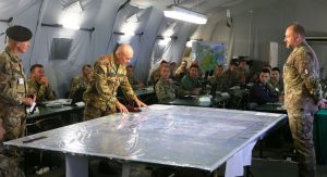 Durante la visita il Generale Castellano, dopo aver assistito ad un briefing illustrativo dell’esercitazione, si è intrattenuto con il personale delle varie F.A. per approfondire la conoscenza dei vari ruoli ricoperti nell’ambito dell’ITA JTF HQ.