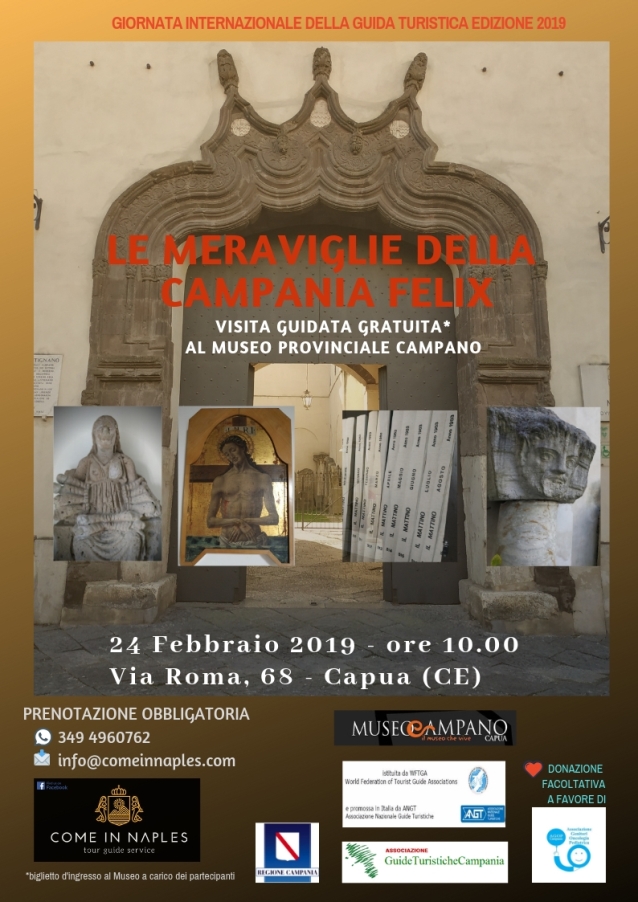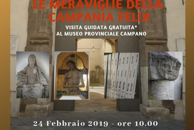L’appuntamento è per domenica 24 febbraio 2019 alle ore 10.00 presso l’ingresso del Museo Provinciale Campano (via Roma 68, Capua; info e prenotazioni 349.4960762, info@comeinnaples.com). La partecipazione all’evento è ammessa su prenotazione ed è totalmente gratuita, fatta esclusione del titolo d’ingresso previsto per il Museo che è a carico dei partecipanti. Al termine della visita gratuita sarà possibile contribuire con una donazione: l’intero ricavato sarà devoluto all’Associazione Genitori Oncologia Pediatrica (AGOP). Il percorso si svolgerà all’interno del Museo attraversando gli spazi dello storico Palazzo Antignano e dell’ex convento della Concezione, custodi di un vasto e vario patrimonio: 32 sale di esposizione, 20 di deposito e 3 grandi cortili in cui le opere sono organizzate per classi, per tipi e per provenienza; ancora, la Pinacoteca e, non meno importante, la Biblioteca ed archivio storico.