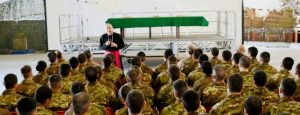 Accolto all’arrivo dal Comandante della Divisione Acqui, Generale di Divisione Fabio POLLI, dal Comandante del 17° R.A.V., Colonello Giuseppe ZIZZARI, dal Sottufficiale di Corpo e dal Cappellano Militare, dopo la resa degli onori da parte di un Picchetto in armi, l’Alto Prelato ha salutato i giovani Volontari, rivolgendosi a loro con parole di gratitudine per la scelta coraggiosa di far parte dell’Esercito Italiano.