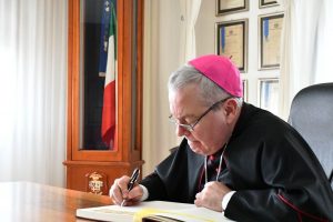 CAPUA – L’Arcivescovo Ordinario Militare dell’Italia, S.E. Monsignor Santo MARCIANÒ, ha fatto visita alla Caserma “O. Salomone” e, in tale occasione, ha incontrato i Volontari in ferma prefissata di un anno (VFP-1) del 3° blocco 2019, giunti al 17° Reggimento Addestramento Volontari (R.A.V.) “Acqui” lo scorso 03 dicembre 2019.