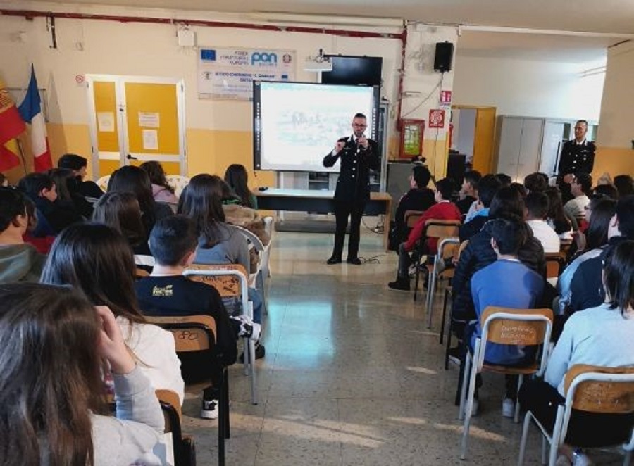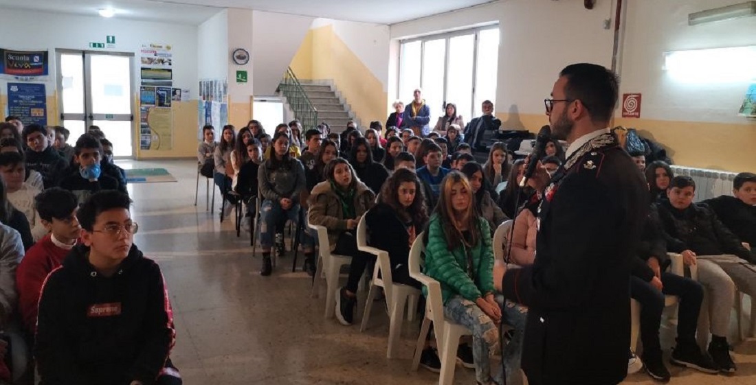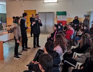 Gli alunni hanno accolto i militari dell’Arma con il canto dell’Inno d’Italia dopo il quale è stata tenuta una lezione sul bullismo, il cyberbullismo, il rispetto dell’ambiente e le insidie del web.
