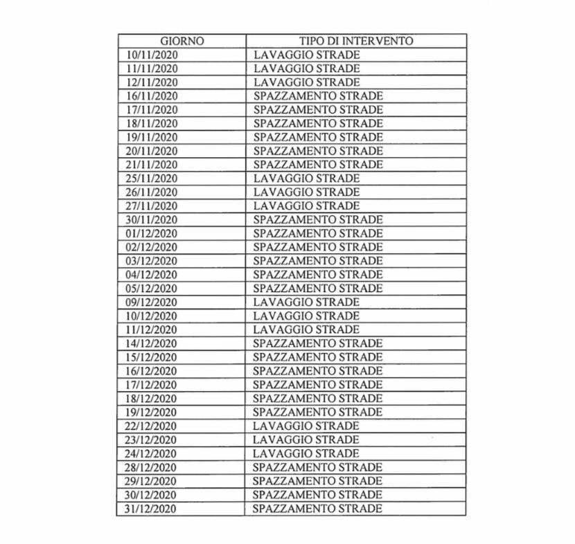 PROGRAMMAZIONE LAVAGGIO STRADE – COMUNE DI CARINARO