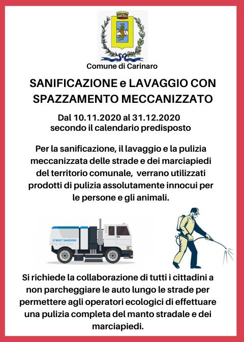 Carinaro-Nell’ottica di interventi programmati per il contrasto e la prevenzione del contagio da Covid-19, l’amministrazione comunale ha predisposto una programmazione di interventi di spazzamento e lavaggio di strade e marciapiedi su TUTTO il territorio comunale.