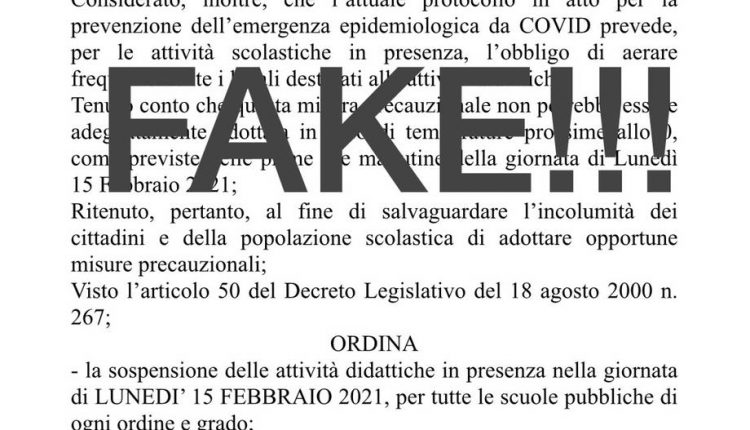Carinaro-“Sta circolando in rete una Ordinanza FAKE di chiusura delle scuole a Carinaro.