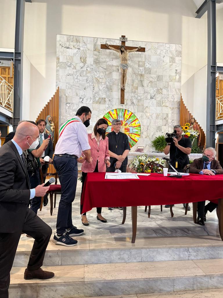 CARINARO – L’amministrazione comunale di Carinaro ha incontrato a Caivano la ministra per il Sud e la Coesione Territoriale Mara Carfagna. L’Ente è stato infatti convocato per la stipula del Contratto istituzionale di sviluppo (cis) ‘Dalla Terra dei fuochi a giardino d’Europa’, un maxi progetto per tutta l’area che rientra nei fondi del Piano nazionale di ripresa e resilienza (Pnrr). Nelle casse del Comune arriveranno 2.990.000 euro per la ‘Messa in sicurezza del territorio dal dissesto idrogeologico con interventi di mitigazione del rischio idraulico tramite la razionalizzazione e funzionalizzazione del sistema di drenaggio urbano” e 2.950.000 per la realizzazione di una pista ciclabile.