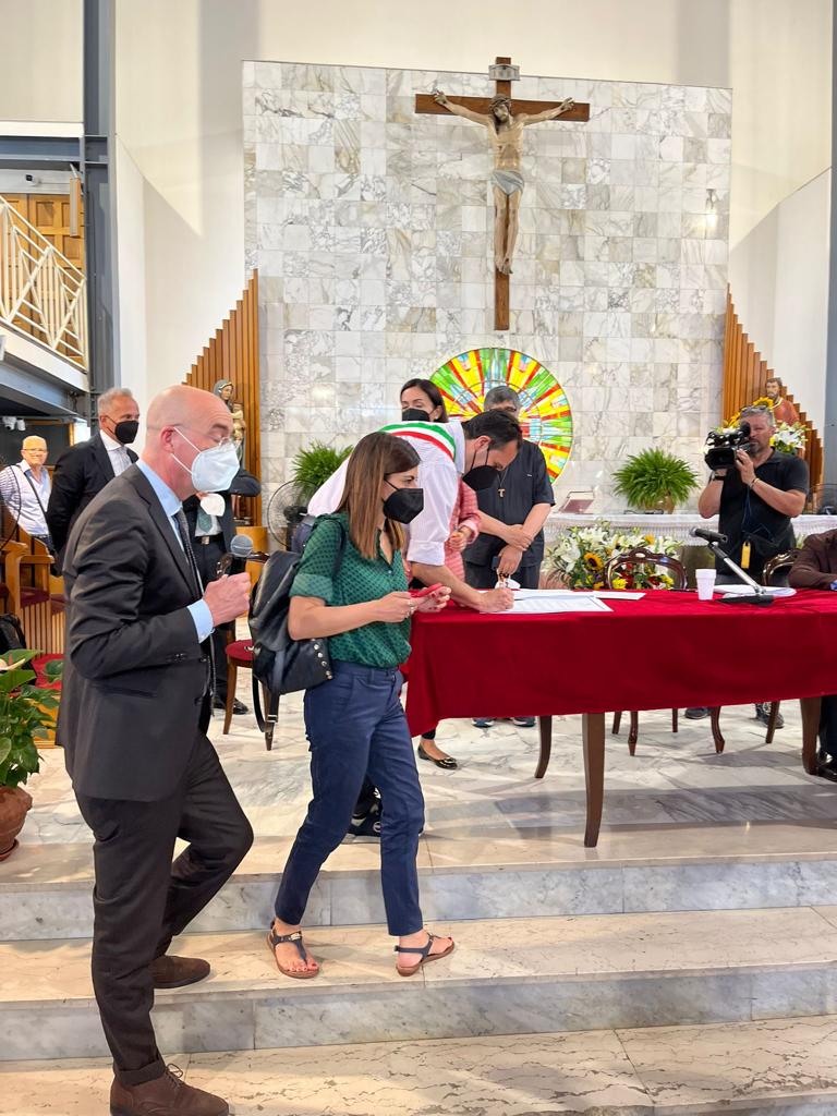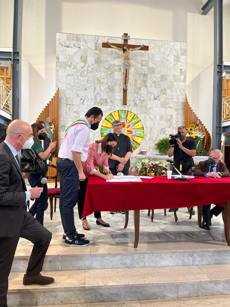 “La firma del contratto è un momento importante per tutta la comunità di Carinaro. C’è grande soddisfazione per il risultato raggiunto, perché alle spalle c’è il duro lavoro. In un primo momento – spiega il sindaco Nicola Affinito – i nostri progetti erano stati tagliati fuori dal Cis Terra dei Fuochi,ma in questi mesi abbiamo tenuto vari incontri con lo staff della ministra, abbiamo insistito e siamo riusciti a rientrare tra gli 8 comuni ripescati. Si tratta di due importanti iniziative di cui tutta la città potrà beneficiarne. Un ottimo esempio di come va sfruttata la sinergia fra istituzioni per arrivare all’obiettivo più importante: migliorare la qualità dei servizi per i cittadini”.