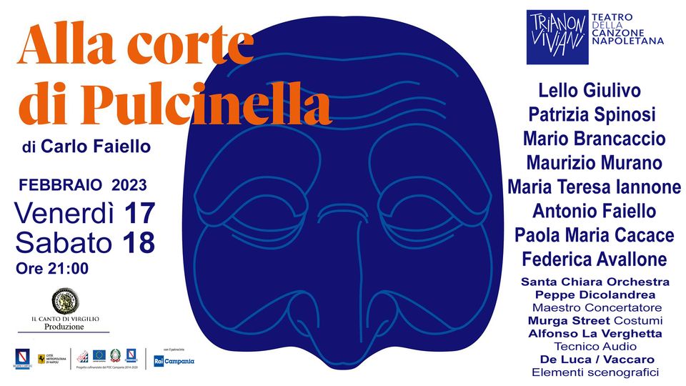 Carlo Faiello riscrive in musica la maschera di Pulcinella in uno spettacolo emblematico: un’opera tra canzoni, pantomime, circo, duelli, danze. Un grande inno alla libertà, all’amore, alla ribellione delle convenzioni, alla rinascita, alla natura e all’ironia che vince sulla morte, sulla miseria umana, sul dolore. Al Teatro Trianon Viviani di Napoli, venerdì 17e sabato 18 febbraio 2023 alle ore 21, va in scena “Alla Corte di Pulcinella”; Concerto–Spettacolo scritto e diretto dal maestro Carlo Faiello. Sul palco: Lello Giulivo, Patrizia Spinosi, Mario Brancaccio, Maurizio Murano, Maria Teresa Iannone, Antonio Faiello, Paola Maria Cacace, Federica Avallone e la Santa Chiara Orchestra. Una compagnia di artisti circensi (esuberanti e stravaganti, forse matti) guidati da Capitan Quadriglia, ritrova Pulcinella. Con la complicità di una bella ragazza, la bizzarra combriccola convince il ‘cetrulo’, in esilio volontario, a ritornare sulle scene. Tra lazzi, pantomime, follie e balli, Pulcinella recupera la sua natura di maschera scomoda ed anticonformista. Diventa capro espiatorio, condannato. In un atmosfera circense di ‘Felliniana memoria’ _ in cui si susseguono ritmi di Moresche guerriere, Tarantelle ipnotiche, Canzoni e Ritmi contemporanei _ accadono ‘cose imprevedibili’ con un finale tutto da scoprire. “Alla Corte di Pulcinella” è un mix di musica, canto e danza che opera una saldatura tra l’archetipo, la storia e l’immaginario di Pulcinella … per un excursus intorno ad un personaggio-icona del mondo delle maschere. La partitura musicale è concepita per richiamare alla mente le sonorità che hanno accompagnato il ‘cetrulo’ durante le sue strabilianti avventure: dai balli di Sfessania ai ritmi della Tammurriata, dalle Tarantelle alle Serenate notturne, ridando nuovo sviluppo ad elementi della musica colta e popolare diffusa in tutto il Mediterraneo; in particolar modo nell’area campana. Un corpus sonoro tale da fondere lo stile tradizionale con suoni e canti completamente inediti e diversi tra loro. Gli inserti musicali sono intrecciati ad azioni teatrali nelle quali si articoleranno tradizioni narrative varie e composite, per esplorare lo scenario mitico e storico che ha caratterizzato la ‘maschera napoletana’ dalle origini fino ai nostri giorni. Un cantato e recitato con una varietà di lingua e dialetto, che permette di rivalutare l’uso del linguaggio tradizionale con nuove sfumature contemporanee. Il Pulcinella giullare di strada si interseca al Pulcinella teatrale; il Pulcinella del carnevale si mescola al Pulcinella d’autore e così via. Una rappresentazione corale che ruota intorno ad un ‘protagonista’ che le fonti, teatrali, musicali, folkloriche e dell’arte figurativa ci descrivono come un punto fermo della cultura occidentale. “L’idea di un progetto su Pulcinella nasce dal proposito, dalla volontà e dalla necessità di dare finalmente alla maschera napoletana un riconoscimento culturale, visto che ha costituito, per quasi quattro secoli, il simbolo universale della napoletanità”. “Uno dei problemi è quello di liberare Pulcinella dai luoghi comuni che gli sono stati appiccicati addosso da quando è entrato nel teatro napoletano: qui Pulcinella è un personaggio molto diverso da quello che ci viene proposto dalla iconografia retorica e dai mezzi di comunicazione di massa. Ancora oggi in Italia si vive della retorica di Pulcinella, che non è arte, ma espressione etnica; ignorando che il nostro popolare ‘eroe comico’ rappresenta un mito di identificazione collettiva, al tempo stesso locale e planetario. Di conseguenza, in questo momento storico di smarrimento, prodotto dal crollo di certezze e illusioni, la sua teatralità può rappresentare emblematicamente la condizione umana contemporanea. Quindi, riscriverne la storia e valutarne lo spessore può essere molto interessante e ‘provocatorio’”. “Chi opera nel campo dell’arte sa benissimo che per superare la contraddizione fra profitto individuale e interesse della collettività, tra potere ed etica, tra tecnologia e fantasia; è fondamentale investire nella Cultura”. “Negli ultimi anni c’è stato un violento processo di omologazione, una progressiva perdita di orientamento, un abuso persuasivo della parola e dell’immagine a discapito dell’universo del sapere. Una possibilità di opporre resistenza a vecchi e nuovi malesseri, provocati dalla cultura di massa, ci viene offerta, pertanto, dal recupero di Pulcinella, metafora cittadina per eccellenza e l’emblema più appariscente della città partenopea. Un evento spettacolare in cui l’eredità culturale della maschera napoletana viene “recuperata” in positivo: come coscienza e immaginario necessario di un popolo che si contrappone a qualsiasi tentativo di sradicamento e di frammentazione”. “Alla corte di Pulcinella” vuole essere un appuntamento per rilanciare il linguaggio colto e popolare legato alla maschera che incarna il carattere napoletano in tutti i suoi aspetti, positivi e negativi; “buffone sacro” in cui è riconoscibile lo spirito di una comunità aperta al mondo, archetipo che risuona dentro di noi e che fa affiorare i nostri desideri e bisogni più segreti”.