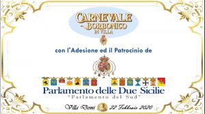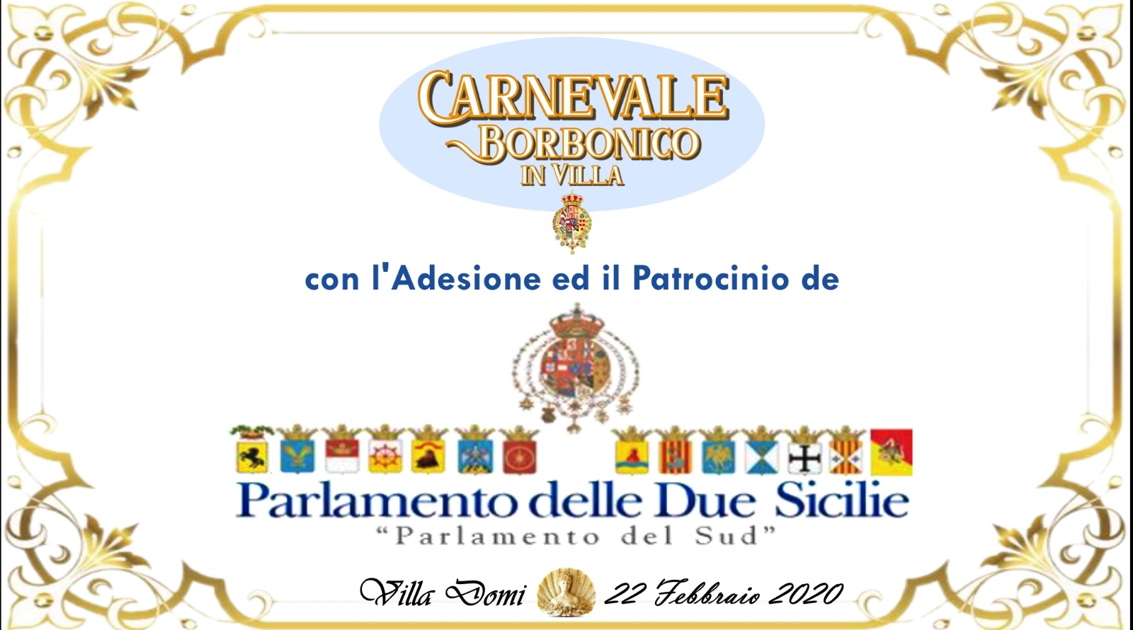 In alternativa: abito scuro e mascherina per l’uomo, abito lungo da sera e mascherina per la donna. E’gradita l’aggiunta di Accessorio Borbonico al proprio outfit.