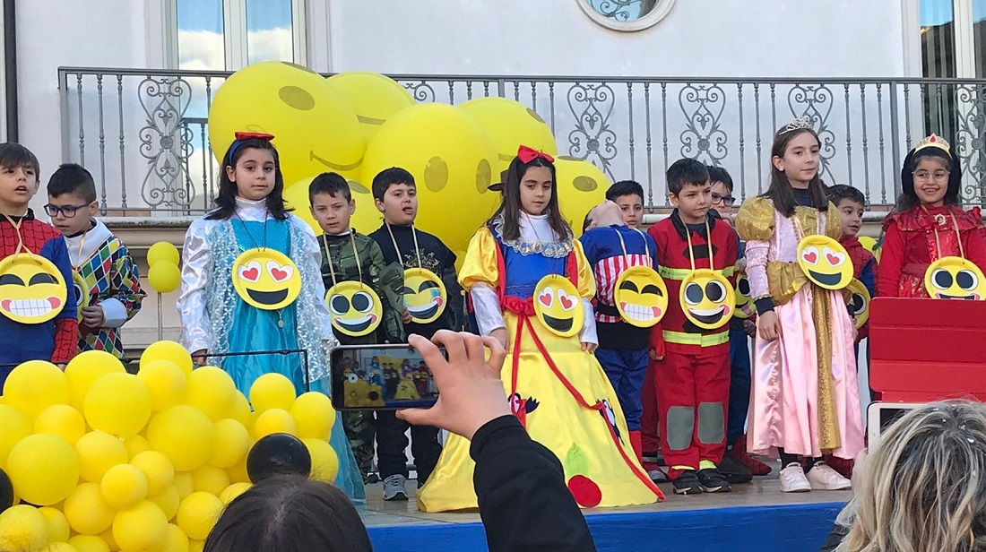 Ad aprire il ciclo di eventi, in occasione del giovedì grasso, è stata la manifestazione organizzata dall’Istituto Comprensivo Statale che ha visto il raduno in piazza XIX ottobre delle maschere che hanno poi stilato nel centro storico fino in piazza Vescovado colorata tutta di giallo, dove è andato in scena lo spettacolo dal titolo “3….2…1….Ciak!! Emoji, accendi le emozioni”, alla presenza della dirigente scolastica Giusy MEROLA con le maestre, del sindaco Di Tommaso con le assessore Morelli e Caterina GINOCCHIO, e degli alunni con rispettivi genitori.