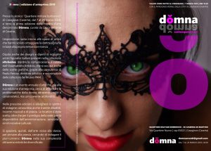 Già da questa edizione si espanderà lo spettro di indagine conoscitiva anche tramite dibattiti, incontri musicali e di poesia. La location è stata scelta, oltre che per il prestigio e la disponibilità dell’amministrazione verso simili iniziative culturali, per la vicinanza all’uscita autostradale di Caserta Nord, che favorirà di sicuro l’arrivo di visitatori da fuori Provincia in previsione dell’espandersi dell’evento. Si spazierà, quindi, dall’arte visiva alla danza, per arrivare alla poesia, cercando di indagare il pluriuniverso Dŏmna nella sua complessità attraverso estetiche diversificate. Parteciperanno: il sindaco di Casagiove, Roberto Corsale, l’Assessore alla cultura, Gennaro Caiazza, Mena Vozza, Vicesegretario UGL – UTL Caserta Mauro Naddei.