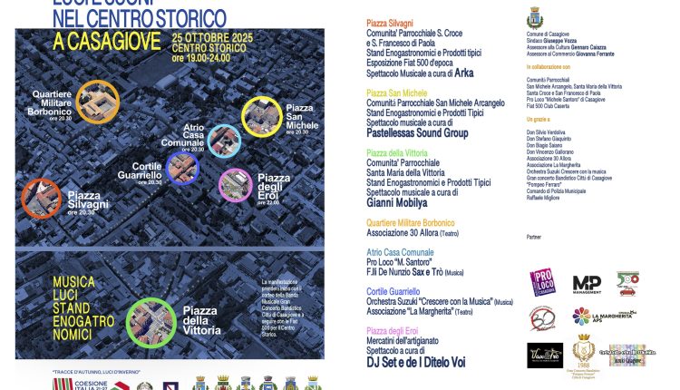 «Abbiamo voluto costruire un percorso culturale diffuso – commenta l’assessore alla cultura Gennaro Caiazza – dove ogni piazza e ogni cortile diventa luogo di incontro, espressione e creatività. “Luci e Suoni nel Centro Storico” non è soltanto intrattenimento, ma un modo per restituire valore alla cultura come esperienza condivisa. È il frutto di un lavoro sinergico che unisce istituzioni, artisti e cittadini, per raccontare Casagiove attraverso la forza della musica, del teatro e della bellezza partecipata».