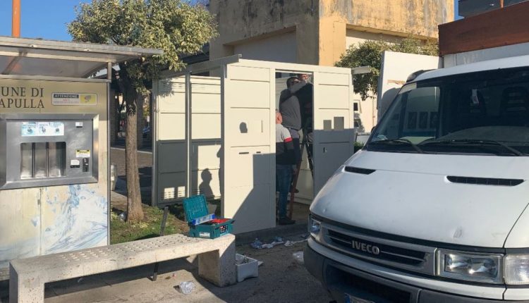 Gli operai hanno iniziato con il montaggio dell’ecompattatore di Piazza Mercato che, insieme a quello di via Kennedy, sarà più grande e consentirà ai cittadini di cestinare sia la plastica che l’alluminio. «Come annunciato alcune settimane fa – afferma il sindaco di Casapulla Renzo Lillo – abbiamo rimodulato e rinnovato la convenzione con la società ‘Garby’, che prevede l’installazione sul territorio comunale di cinque ecocompattatori di ultima generazione per la raccolta differenziata dei rifiuti da imballaggio in plastica ed alluminio.