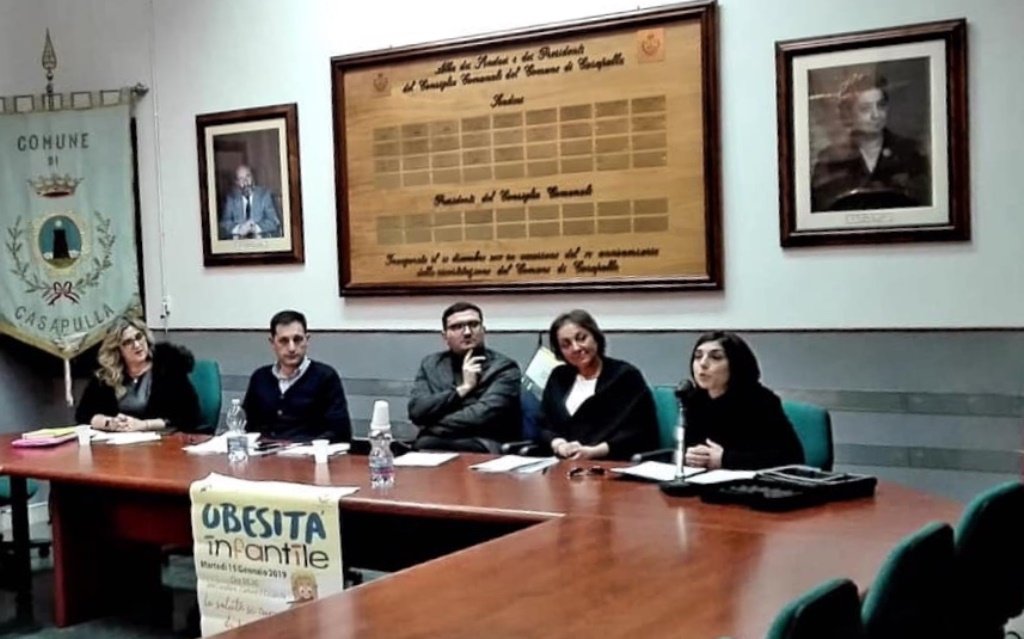 CASAPULLA – “Obesità infantile. La salute si cura da piccoli”: questo il titolo del convegno organizzato dall’associazione “Giovani al Centro” di Casapulla, che si è tenuto nel pomeriggio di martedì, 15 gennaio 2019, presso la sala consiliare “Vescovo Michele Natale”. Tanti i cittadini che hanno partecipato attentamente all’interessante incontro, incentrato su una problematica che con il passare degli anni assume sempre più rilevanza sociale. Ad aprire il convegno la dottoressa Giuliana Semprebuono, che ha portato i saluti del commissario prefettizio di Casapulla Immacolata Fedele.
