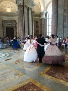 . Danzatori della Società di Danza presenteranno la rievocazione di un Gran Ballo in costumi d’epoca con musiche e coreografie originali dell’epoca, romanze ed arie d’opera con il Soprano Leontina Alvano, M° di Cerimonia Lucio Martino. Il Gran Ballo Ottocentesco in abiti d’epoca è una grande rievocazione storica di un Ballo Ottocentesco a Corte organizzato dall’Associazione Culturale Società di Danza Napoli e Caserta che già altre volte ha offerto magnifici eventi danzanti in costume d’epoca. Si esibiranno nella Sala del Trono circa 30 danzatori dell’associazione che eseguiranno Valzer, Quadriglie, Contraddanze, Marce, Mazurche su musiche di Strauss, Verdi e Beethoven. Il Gran Ballo Ottocentesco sarà in abiti d’epoca e coreografie originali del periodo Romantico Borghese 1830-1860.