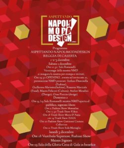 , nome di spicco nella moda internazionale. E Il trunk show di Italo Marseglia. Ancora, nello stesso giorno, le sfilate di Monnalisa, Isaia, Kilesa e Mario D’Anna. Lunedì 3 dicembre il fashion show dell’Atelier Signore. La tre giorni si concluderà poi nella Sala della Gloria con la cena di gala in beneficenza per Azione Sorriso Onlus con la chef stellata Rosanna Marziale. Ma non sarà solo Reggia, la rassegna “AspettandoNapoliModaDesign” a partire dal 4 dicembre e fino all’8 coinvolgerà anche il centro storico di Caserta con iniziative e appuntamenti che vedranno protagonisti gli ordini professionali degli Architetti e dei Giornalisti. “Le iniziative che animano “NapoliModaDesign” – sottolinea il direttore artistico Maurizio Martiniello