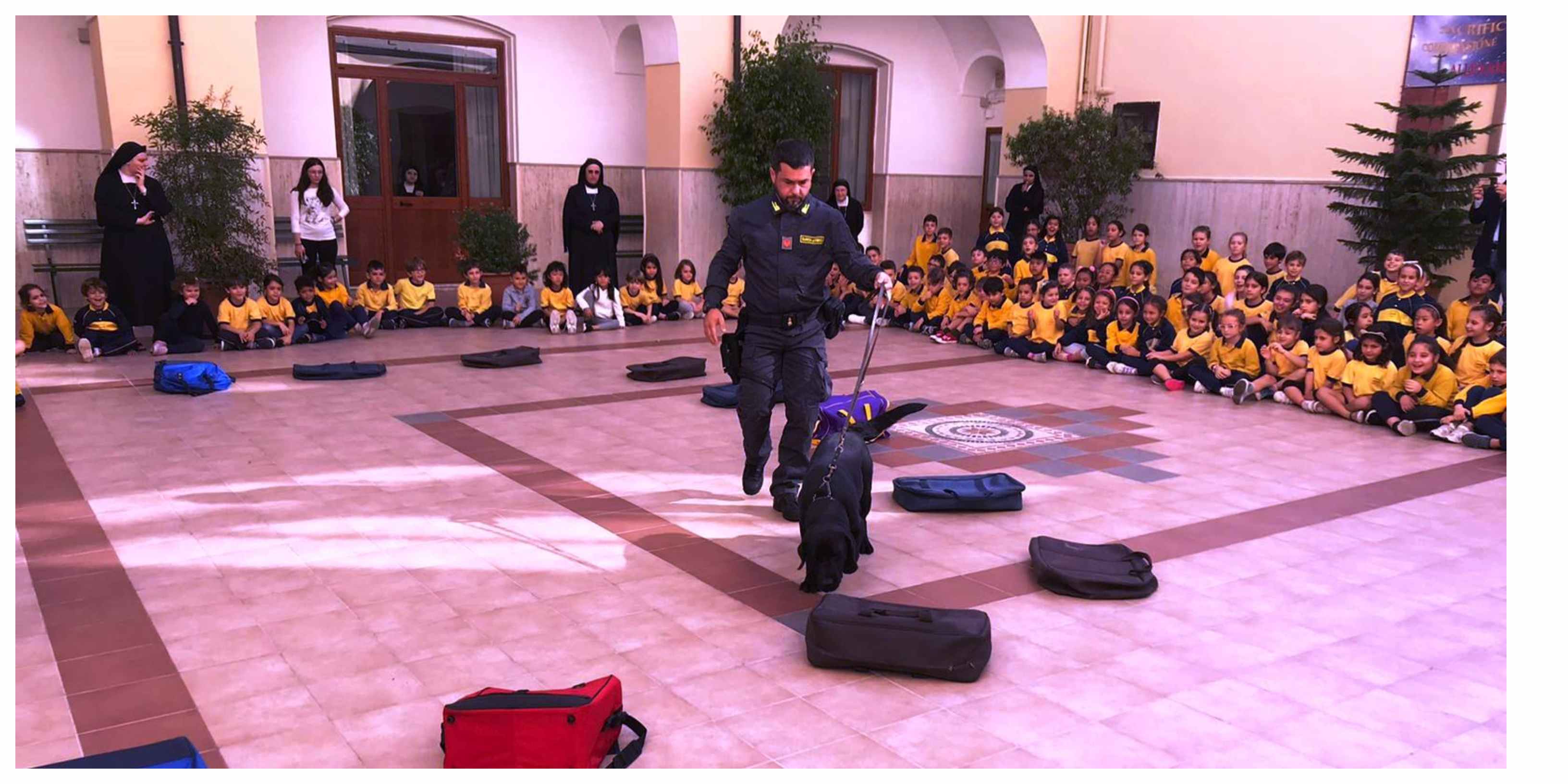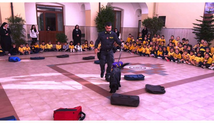 L’iniziativa ha visto attivamente coinvolti gli alunni e le insegnanti della Scuola Primaria dell’Istituto Sacro Cuore. Gli agenti della cinofila hanno spiegato, ai bambini presenti, il ruolo dei cani nel loro lavoro per poi lasciare spazio a curiosità varie. In seguito hanno creato un percorso dove i bambini hanno potuto vedere concretamente come i cani agiscono in alcune situazioni.